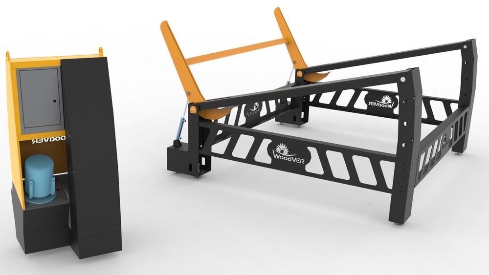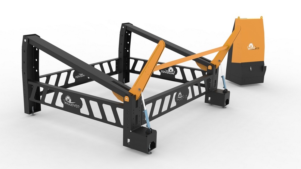 Гидравлический погрузчик с накопителем устанавливается на Угловую пилораму ВудВЕР УГП2–600 и значительно ускоряет и упрощает процесс погрузки бревен на станину станка.