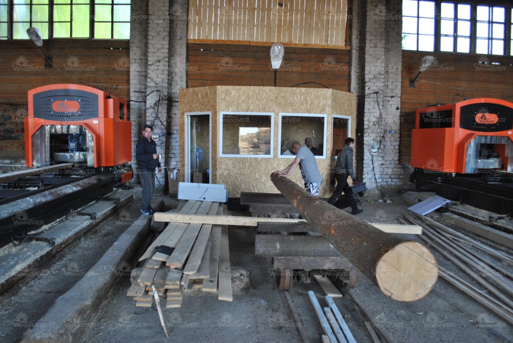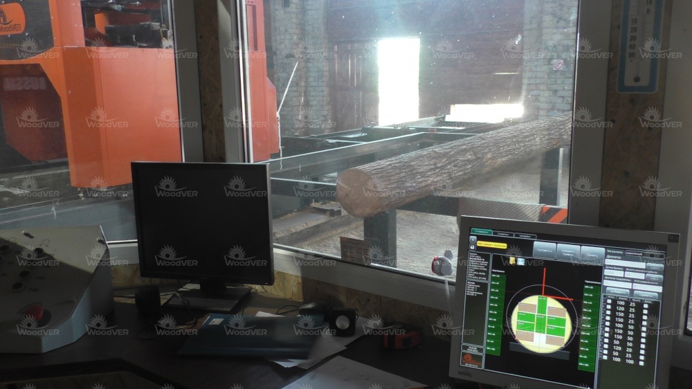 Операторский пост при этом один, его кабинка размещена между пилорамами. Работает один оператор. Окна во все стороны позволяют ему видеть происходящее своими глазами, а более точный контроль самого процесса пиления выполняется с помощью наблюдательных видеокамер.