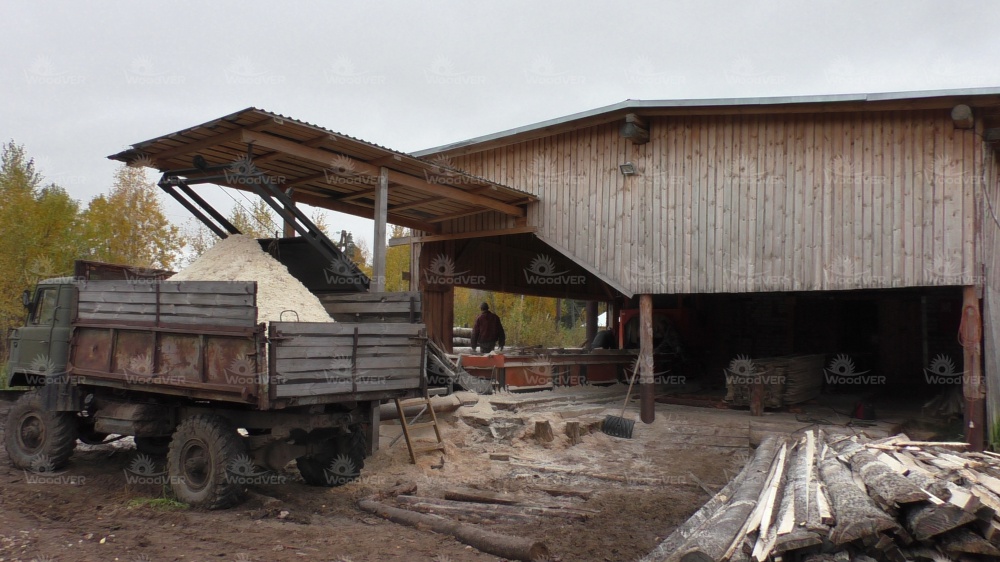 В процессе выбора оборудования владелец лично осмотрел множество действующих лесопильных производств, а также производств, собирающих лесопильные станки. Результат - выбор угловой пилорамы ВудВЕР УГП2-600.