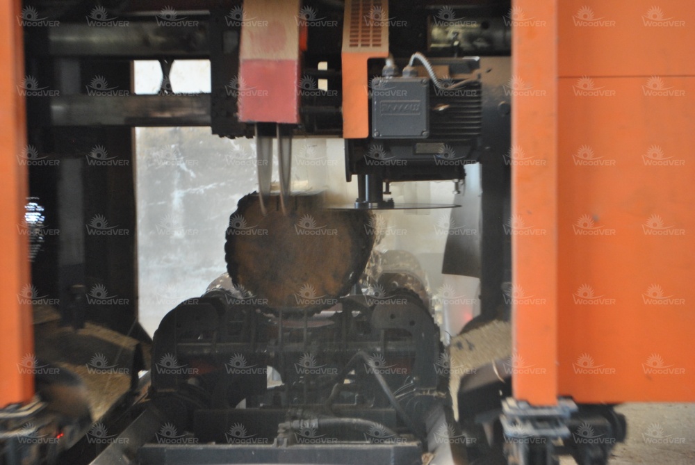 Специфика использования дисковых пилорам состоит здесь в работе с сырьём короткой длины. В среднем это 3 метра. Поэтому дополнительно заказанный комплекс был выполнен с укороченной станиной и более плотной компоновкой зажимов. Кроме того, в пильных узлах смонтировано по два вертикальных диска вместо одного. Это решение позволяет получать сразу два обрезных бруска заданной размерности за один проход.