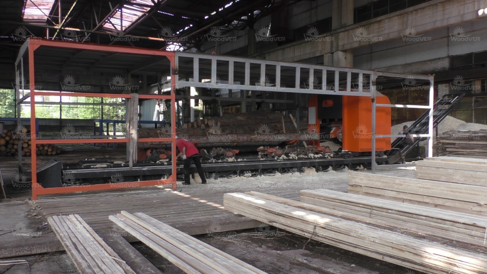 Комплекс работает с любым лесом, в зависимости от параметров которого определяется и размерность пиломатериала. В основном это доски. Робот-погрузчик брёвен отвечает здесь за подачу сырья в рабочую зону, а скребковый транспортёр с подъёмным модулем значительно облегчает процесс удаления опила.