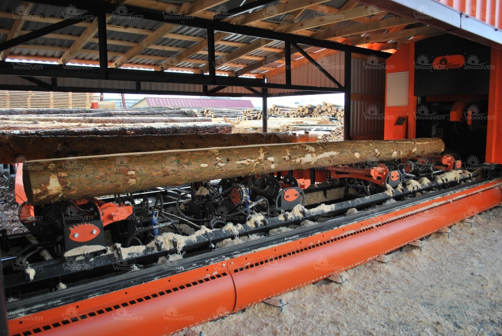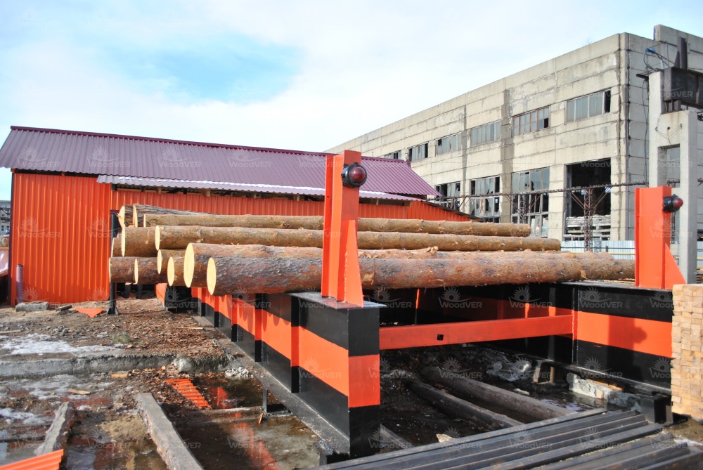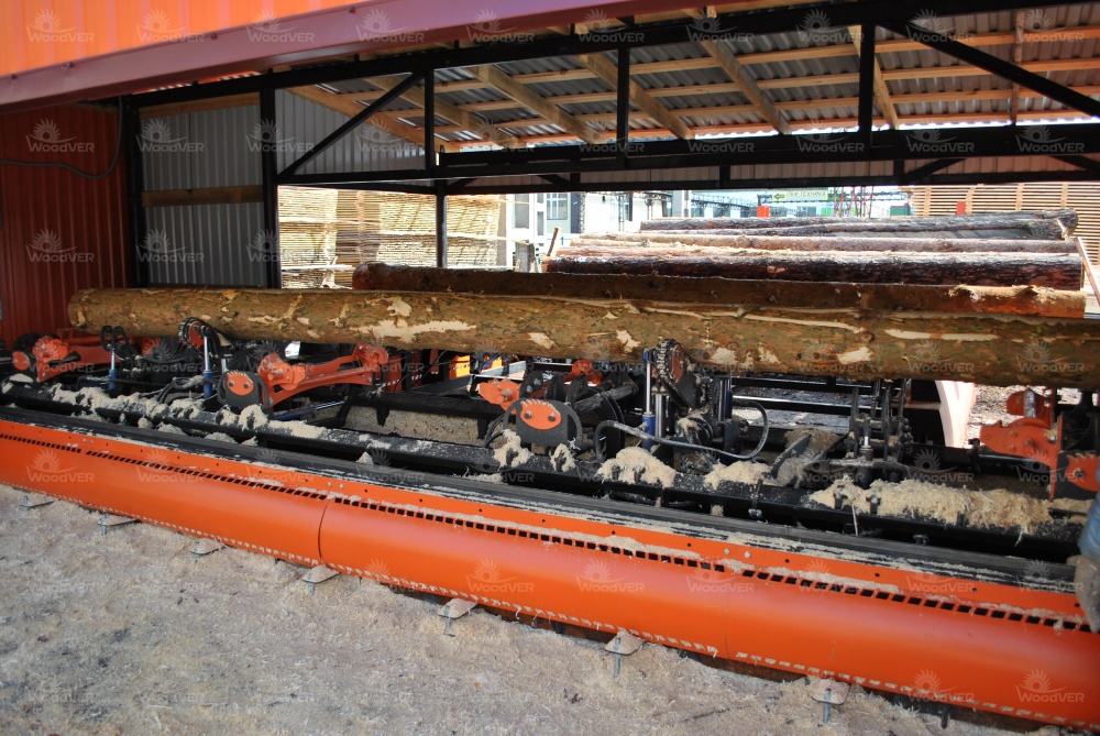 Станок размещён под специально созданным навесом. Этот навес, а также элементы накопителя брёвен выкрашены по желанию владельца в цвет, совпадающий с окраской самого комплекса.