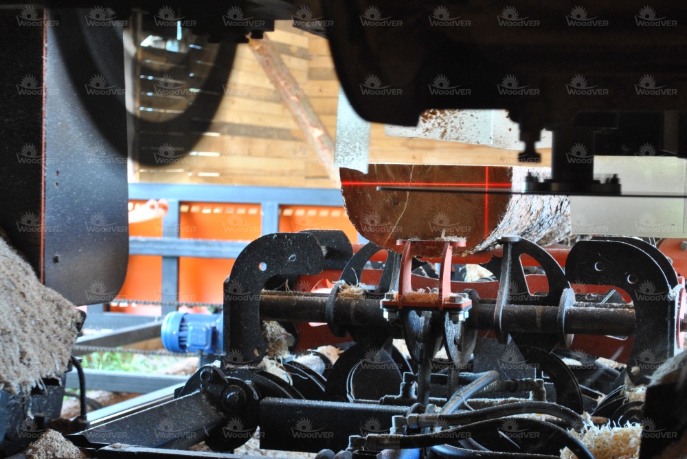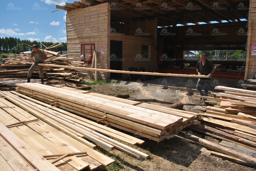 Комплекс используется для производства доски и бруса крупных размеров. Владелец отметил, что по сравнению с ленточной пилорамой комплекс потребляет чуть больше электричества, но в целом фактор расходов электроэнергии практически не оказывает воздействия на прибыльность станка.