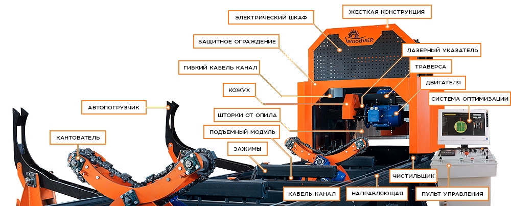 Угловая пилорама ВудВЕР УГП2-600 предназначена для распиловки круглого леса на обрезной и необрезной пиломатериал. По мимо строительных материалов (доска, брус) на пилораме производятся заготовки для оконного и клееного бруса, паркета, мебели, отделочных материалов. Работа станка возможна как в ручном режиме, так и с помощью системы оптимизации раскроя. В результате чего получается достичь максимального выхода готовой продукции и использовать различные типы раскроя.