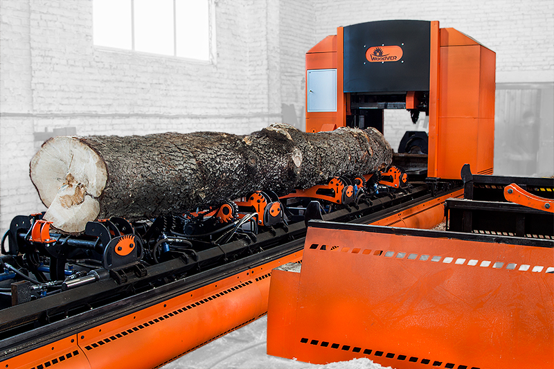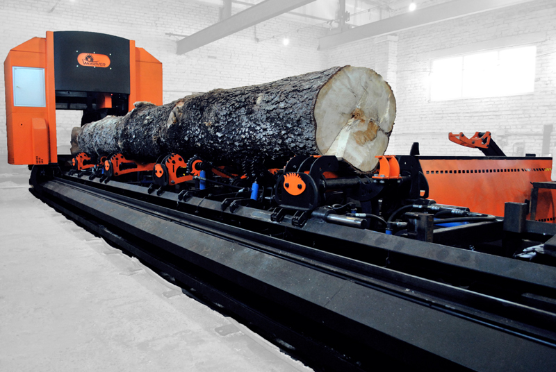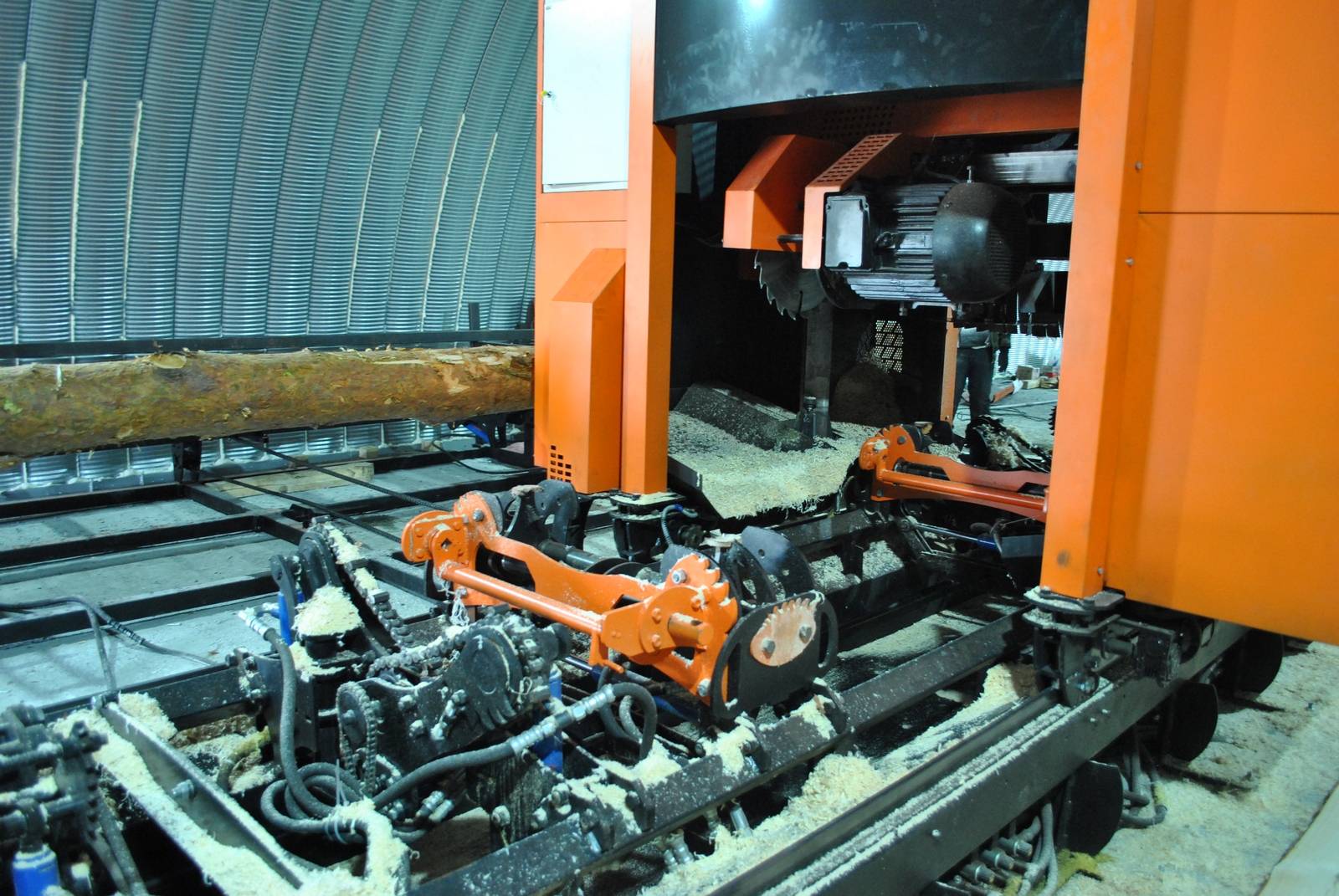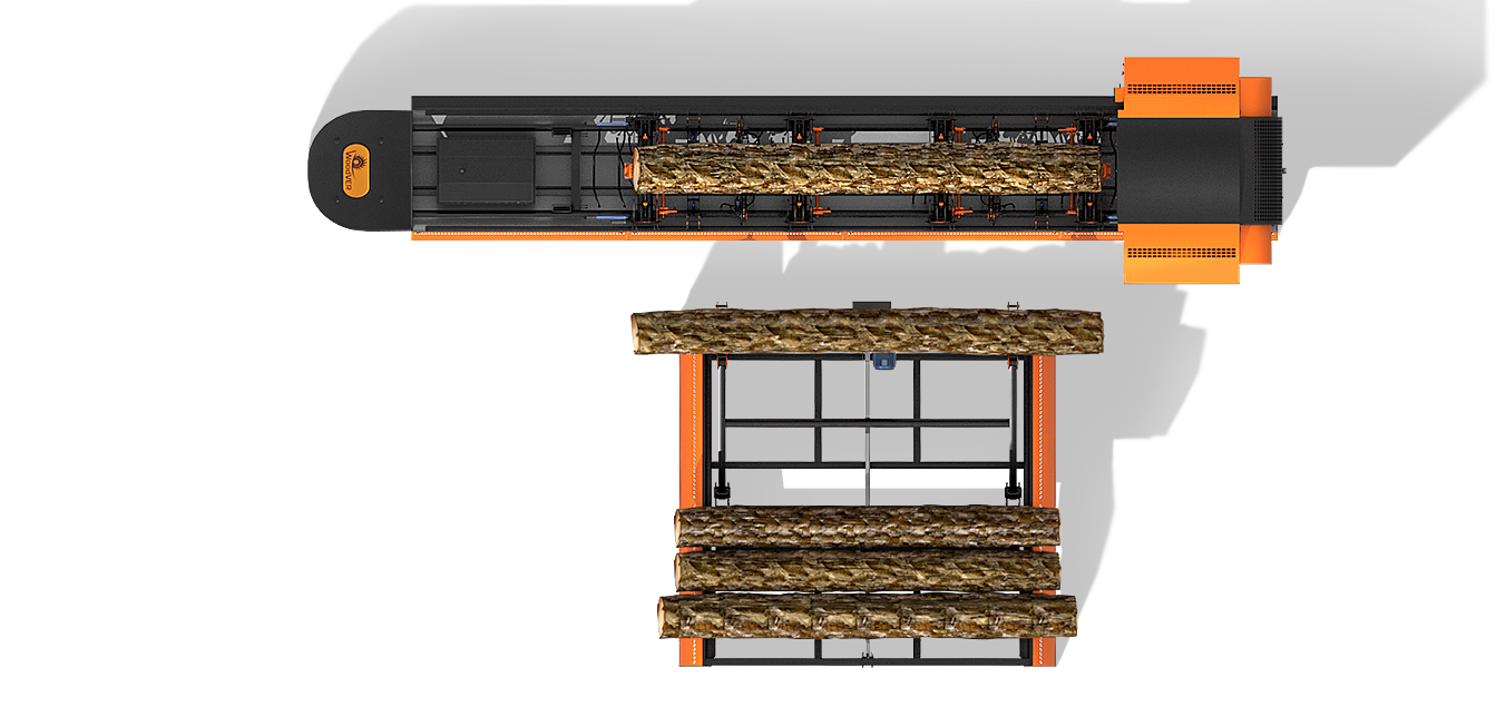 4 пары боковых зажимов надежно фиксируют бревно в положении, которое было установлено с помощью кантователей и центраторов. Зажимы автоматически подстраиваются под естественную кривизну бревна. Крайние зажимы перемещаются вдоль станины, подстраиваясь под длину бревна.