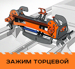 С целью гашения возможной вибрации бревна при входе и выходе пилы, а также для исключения колебаний вокруг своей оси и продольного смещения используются торцевые зажимы. После зажатия торцевыми и боковыми зажимами исключаются смещения бревна по всем степеням свободы.