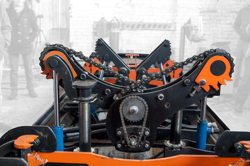 Цепной гидравлический кантователь бревен позволяет повернуть и приподнять бревно с целью получения максимального выхода пиломатериала.